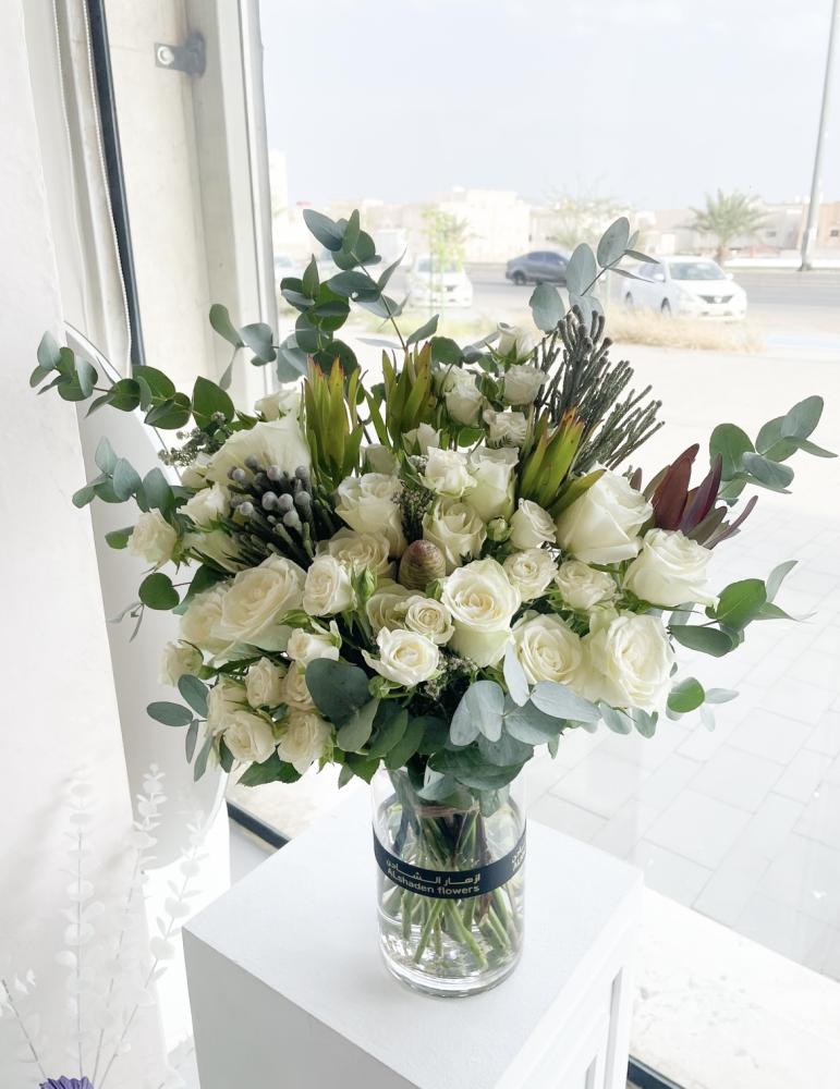 فازه ورد مكونه من الورد الابيض مع الخضار الهولندي