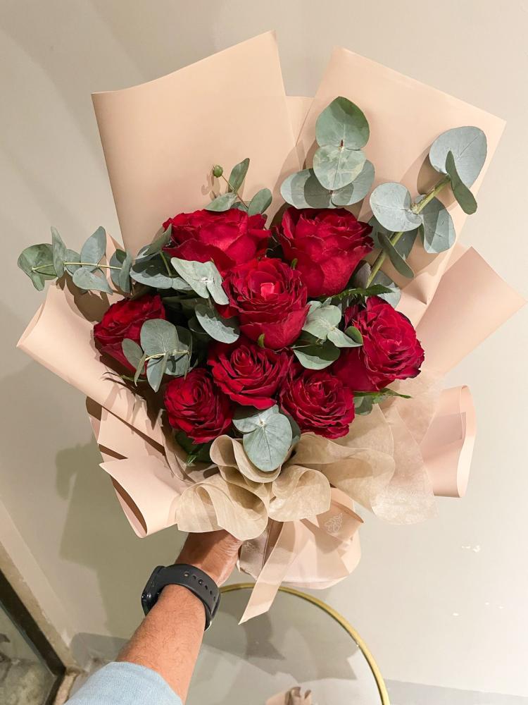 بويكه ورد باللون الاحمر و خضار الكليبتوس 💜