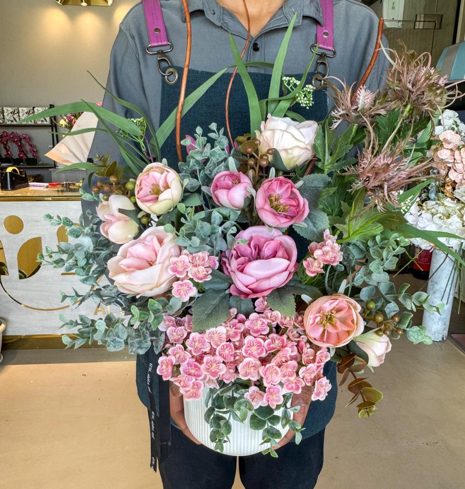 فازه ورد صناعي مكونه من فازه من السيراميك و الورد الصناعي ملمس طبيعي